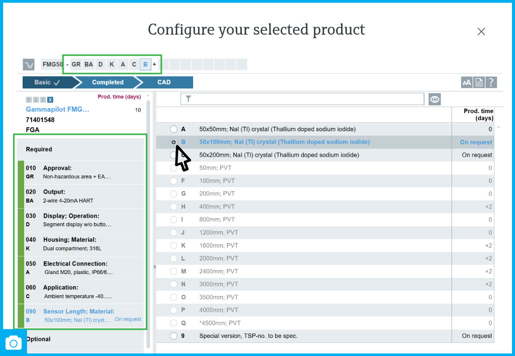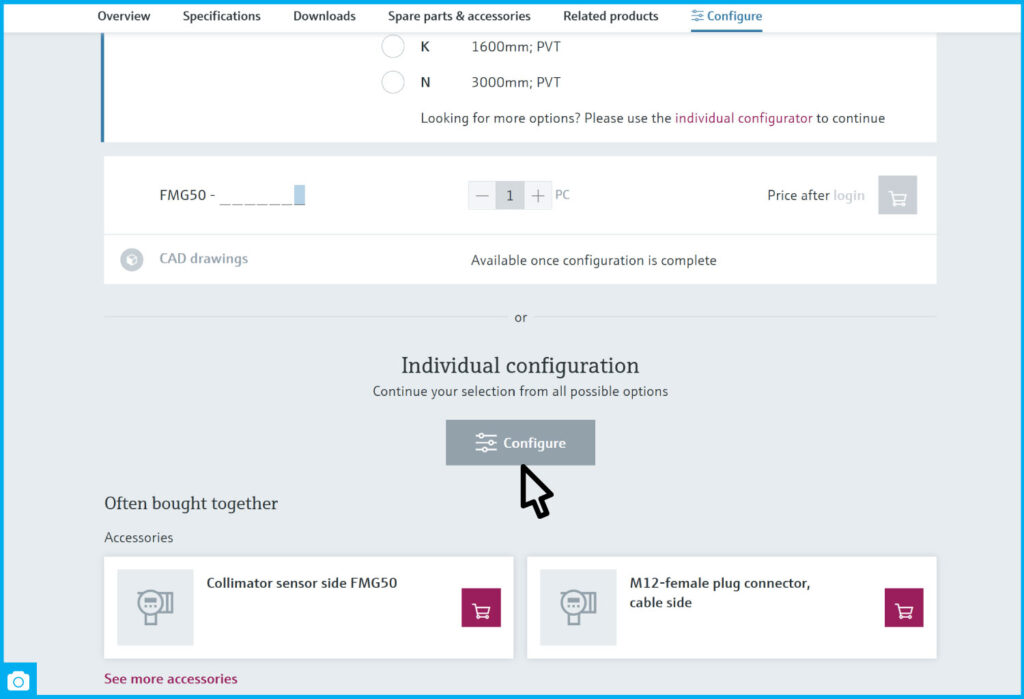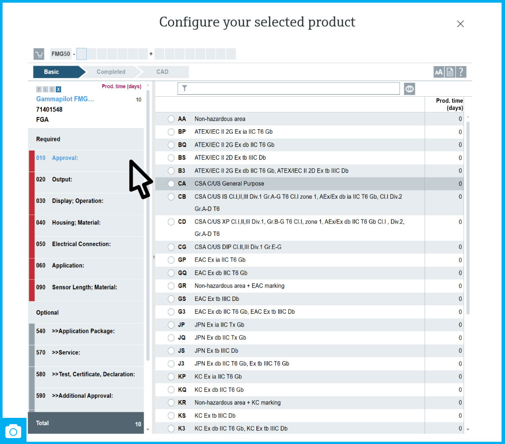 Instead of choosing from a long list of ready-made models, the configurator allows you to create a device version step-by-step that perfectly matches your process characteristics.