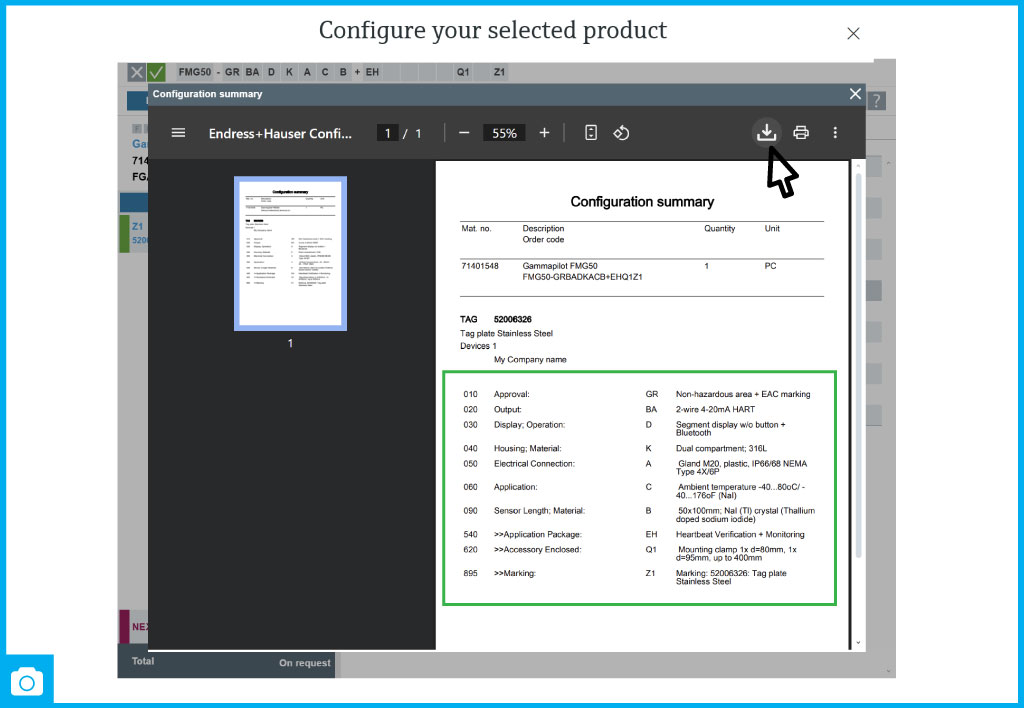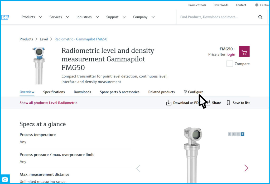 The Endress+Hauser Configurator is an online tool that helps you configure equipment to meet your specific technical and process needs.