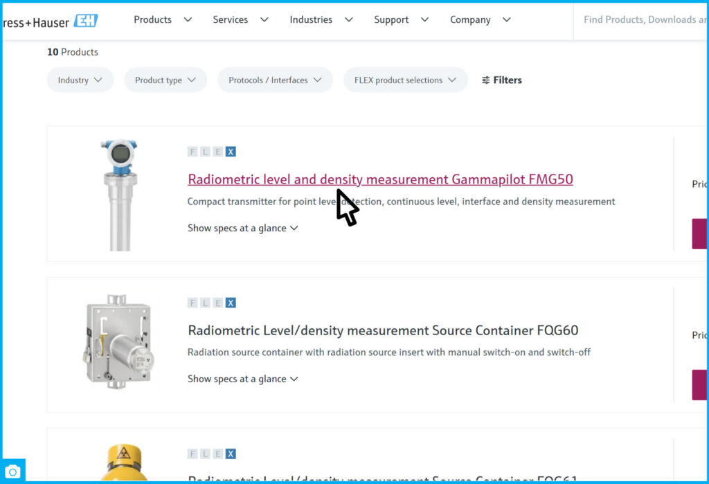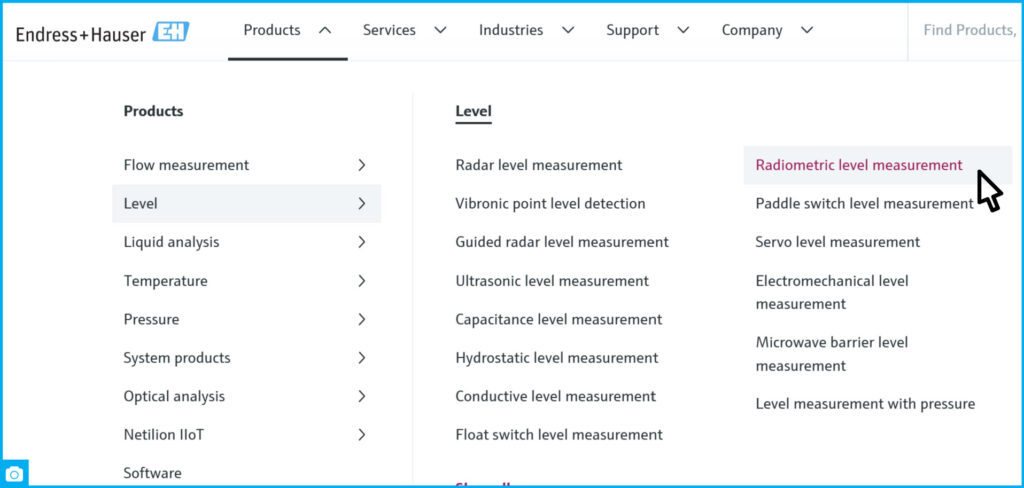 The Endress+Hauser Applicator is another convenient solution that significantly simplifies product searches.This feature allows you to find the right device for your technical task based on the application or type of measurement.